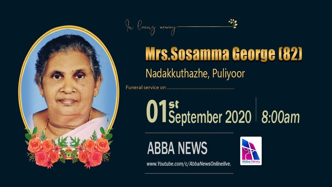 Mrs Sosamma George 82 Nadakkuthazhe Puliyoor Funeral Live Webcast Youtube
